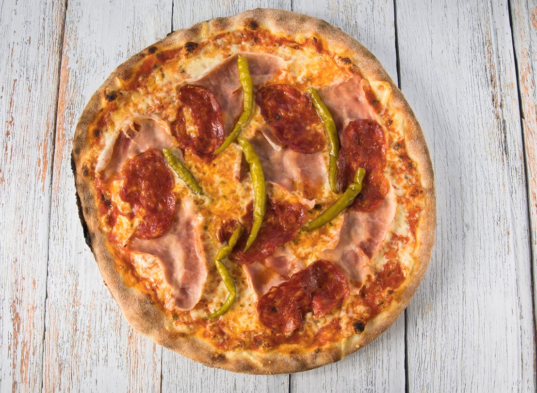 pikáns szalámi, sonka, csípős pepperoni, mozzarella sajt, paradicsomszósz (32cm)