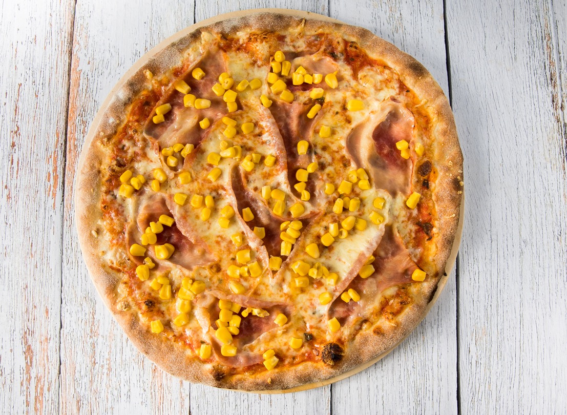 sonka, kukorica, mozzarella sajt, paradicsomszósz (32cm)